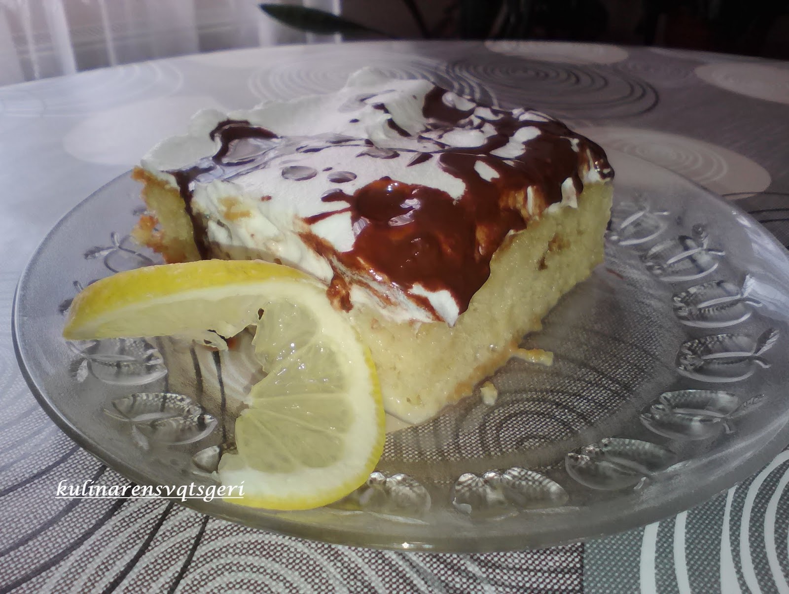 Залива се с прясното мляко смесено със захарта и лимоновата есенция.